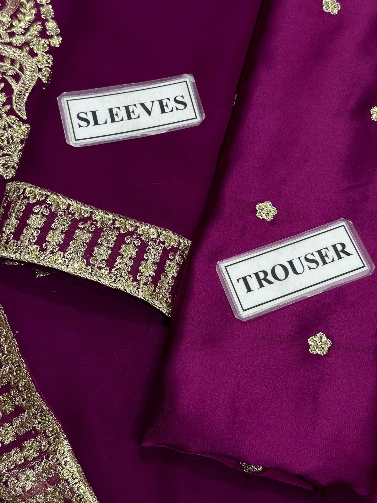 Iznik-Inspired Regal Plum Chiffon Embroidered Suit
