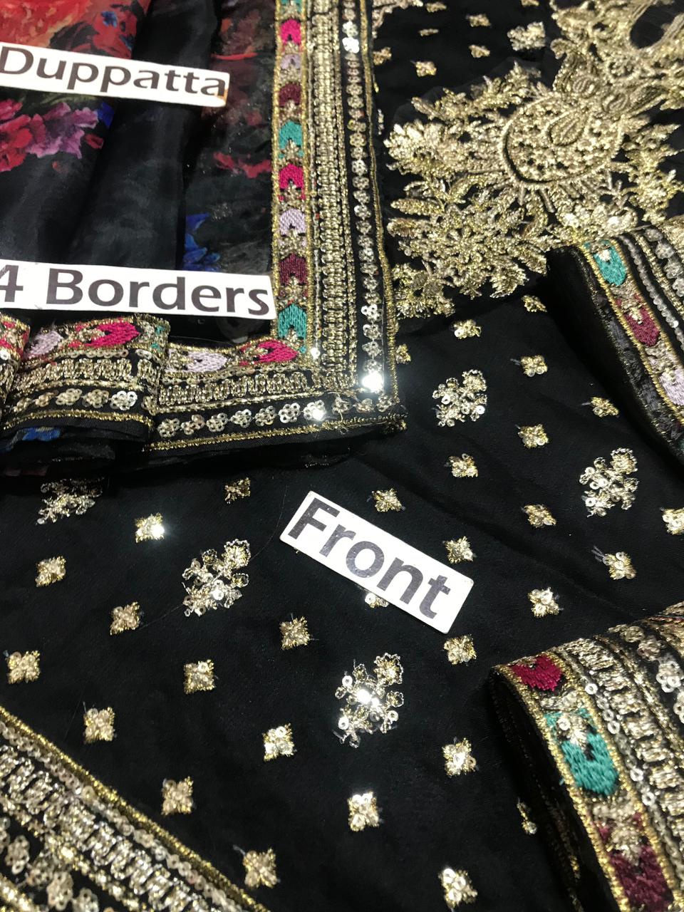 The highlight of this outfit is the printed organza dupatta, adorned with four-side cut work embroidered borders, giving it a premium ready-to-wear look. Paired with a soft and comfortable malai fabric trouser, this suit is perfect for weddings, parties, festive occasions, and formal wear.