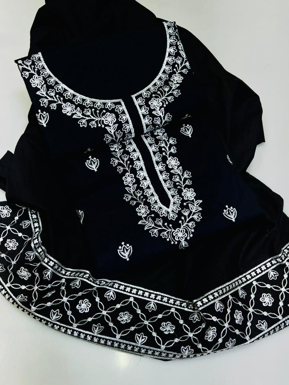 Shop the most loved URGE PRET black 2-piece embroidered suit, specially designed for winter season. Made with premium winter cotton fabric featuring front fully embroidered shirt and heavy poncha embroidered trouser. Guaranteed color quality, elegant thread work, and limited stock availability. Perfect choice for winter wear, casual gatherings, and semi-formal occasions.